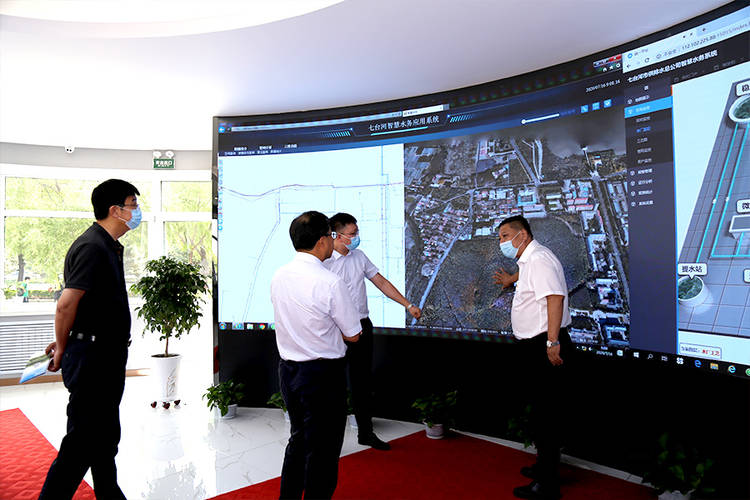 在供排水总公司智慧水务管理中心,市委书记王秋实详细听取了荣长海总经理关于智慧水务建设进展情况的汇报,并重点询问了源水供应、水厂处理能力、供水水量、供水水质等工作情况,现场观摩了智慧水务平台数据在线监测等功能演示。